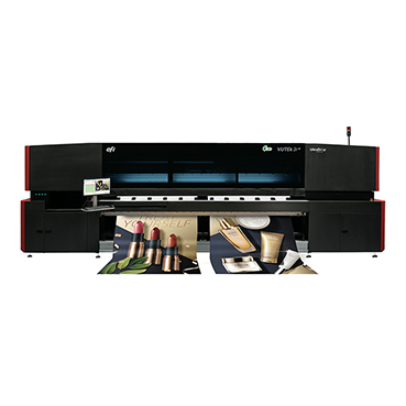 EFI VUTEk H3 hybrid printer allows printing on both roll and rigid materials.