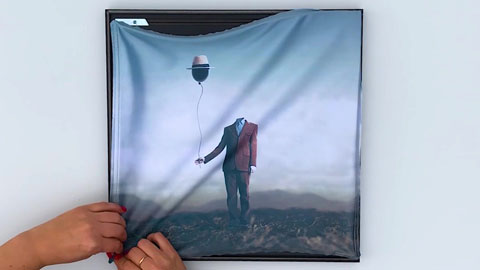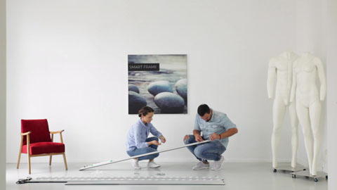 Textile Frame is a modern fabric tensioning system. It consists of an aluminium frame and high quality graphics printed on fabric. The fabric, trimmed with a silicone rubber band, allows for easy and quick clipping into the frame.