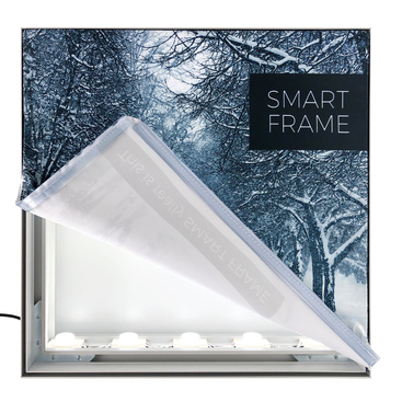 Oświetlenie LED zamontowane wewnątrz ramy równomiernie rozświetla grafikę i niesamowicie podnosi atrakcyjność całego stoiska.