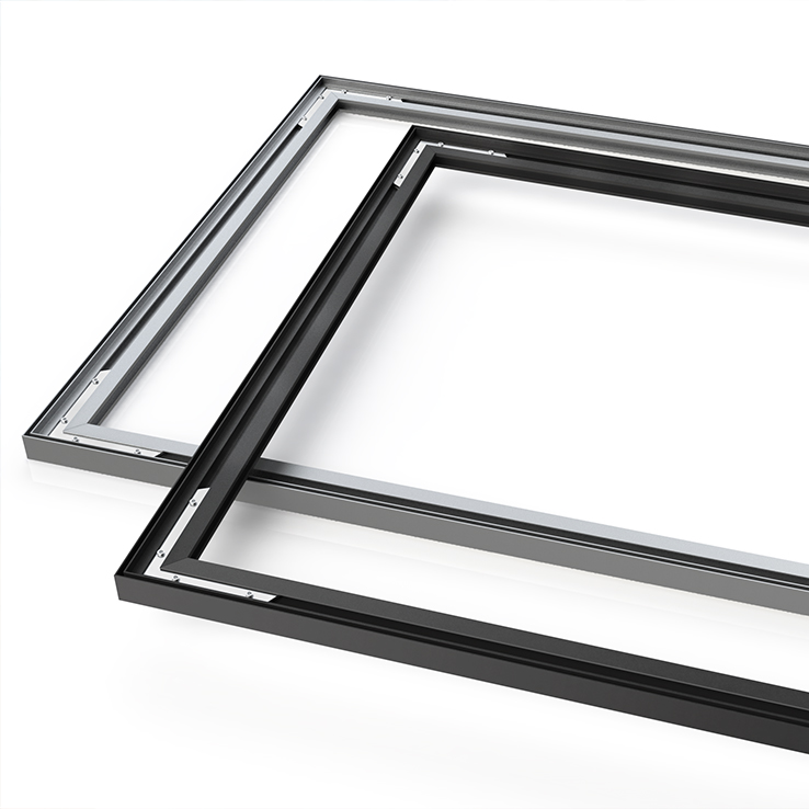 Ścianki, parawany, przegrody i inne ramy wolnostojące Textile Frame wykonane są z profili aluminiowych, w które wpina się tkaninę z grafiką. Rodzaj profilu dobiera się odpowiednio do formatu ramy tak, aby zapewniał sztywność i stabilność konstrukcji przy zachowaniu jej maksymalnej lekkości. Warto zwrócić uwagę na profile typu lightbox, które pozwalają na montaż modułów LED i efektowne podświetlenie grafik od wewnątrz.